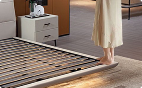 轻薄舒靠床屏+隐藏式床脚 ,轻简卧室空间