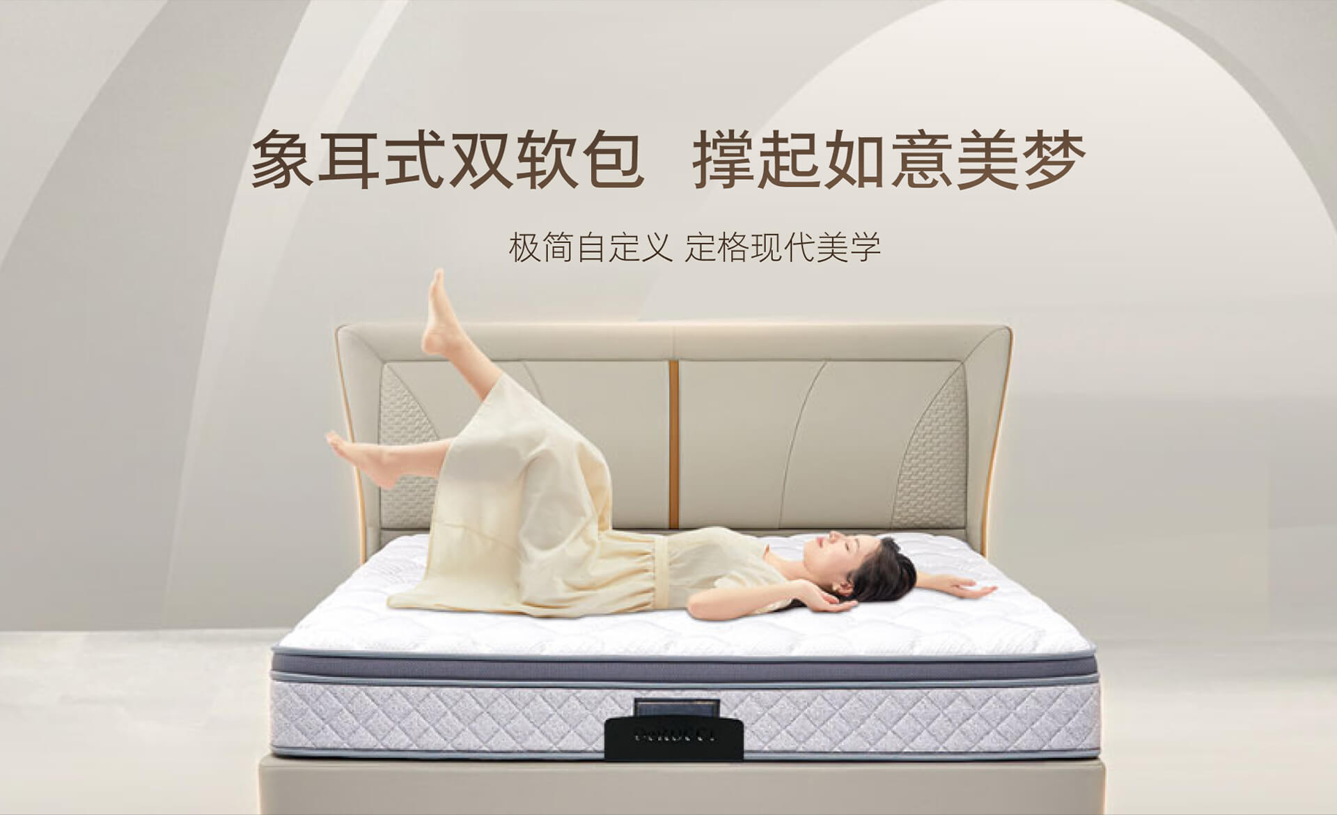 双层靠包以优美的弧线环绕头枕使得整体